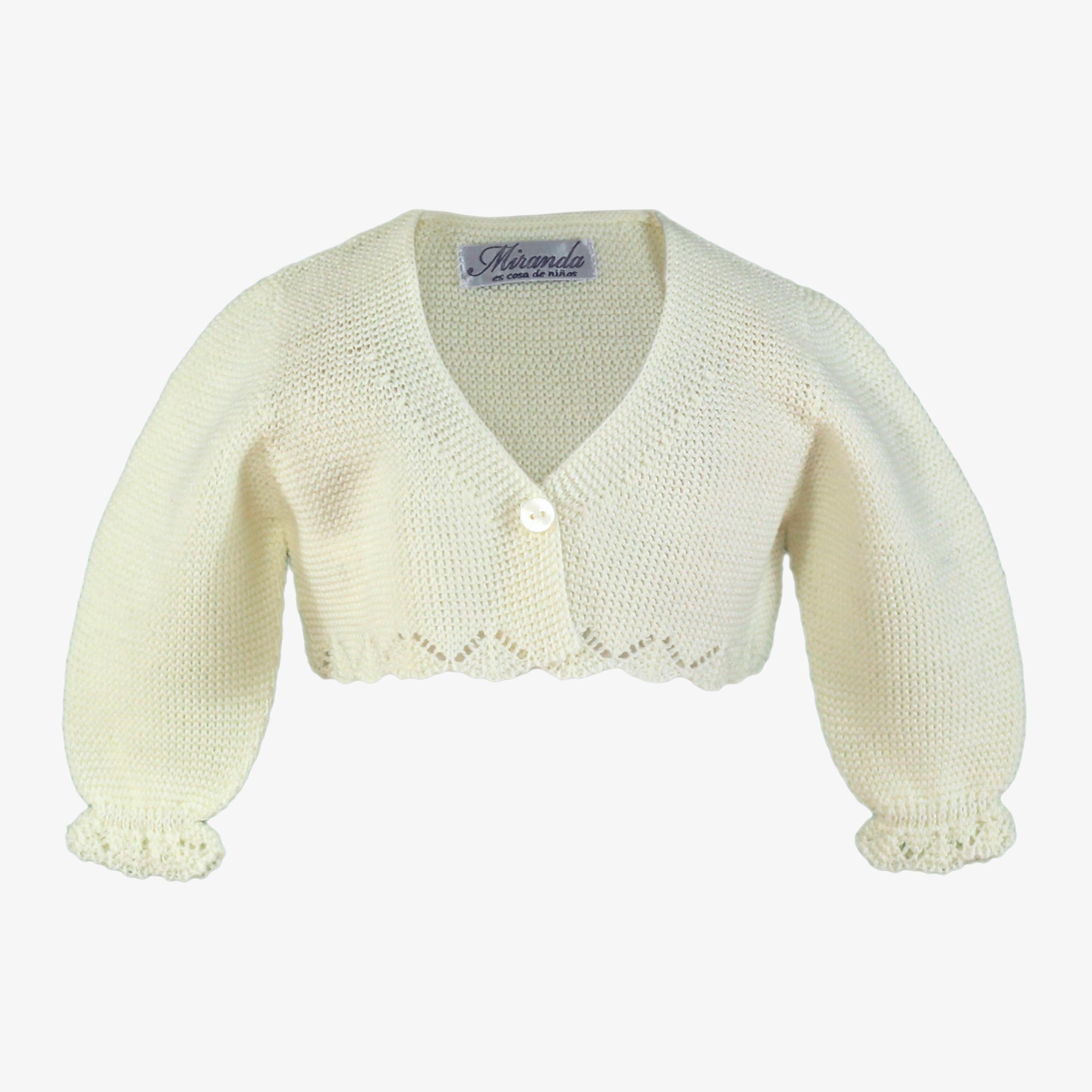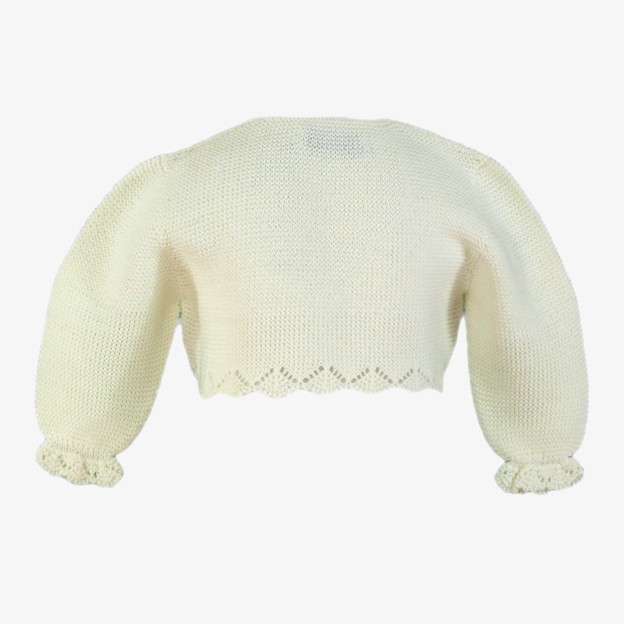 Torerita de punto con bordado en cintura y punto. Abertura delantera con botón y elástico en puño. Ideal para ceremonia.