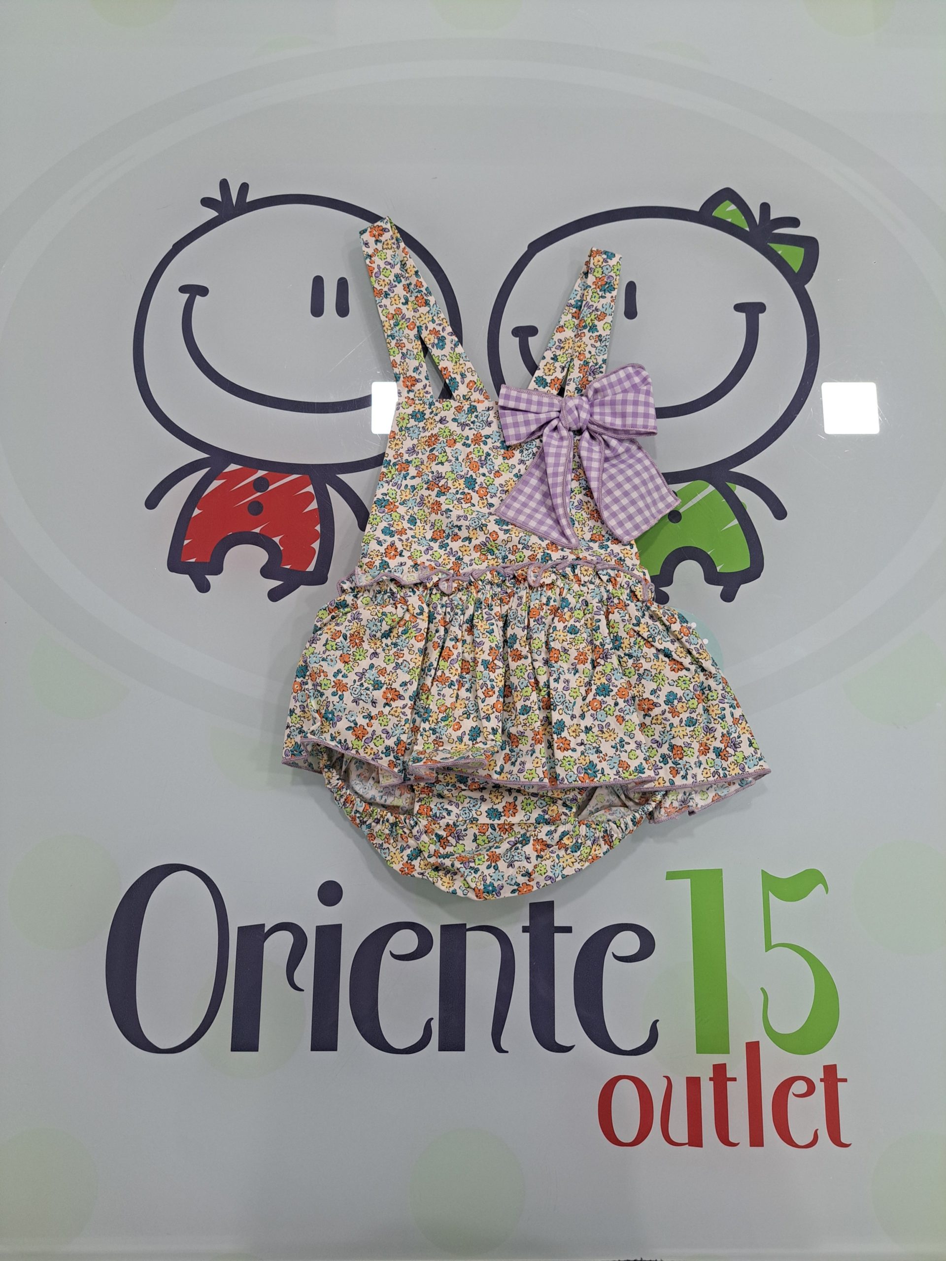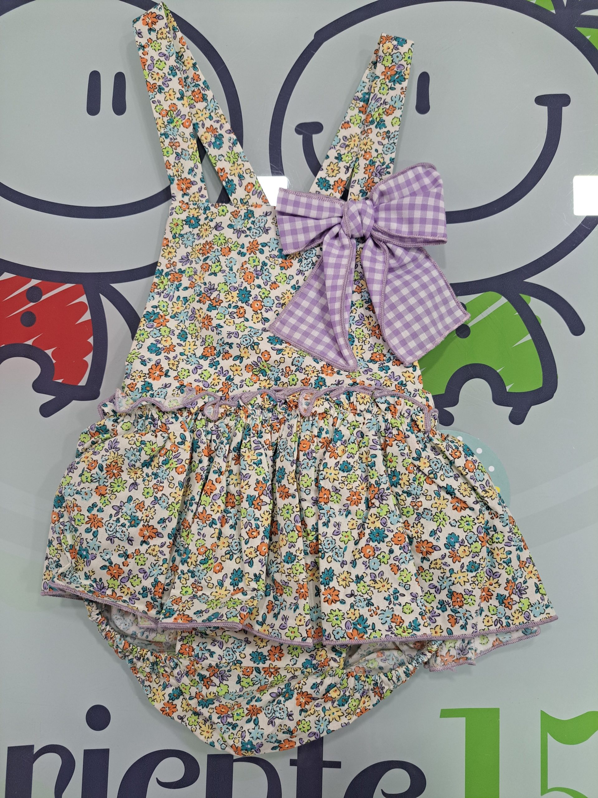 Pichi en estampado de flores multicolor con lazo vichy en color morado.