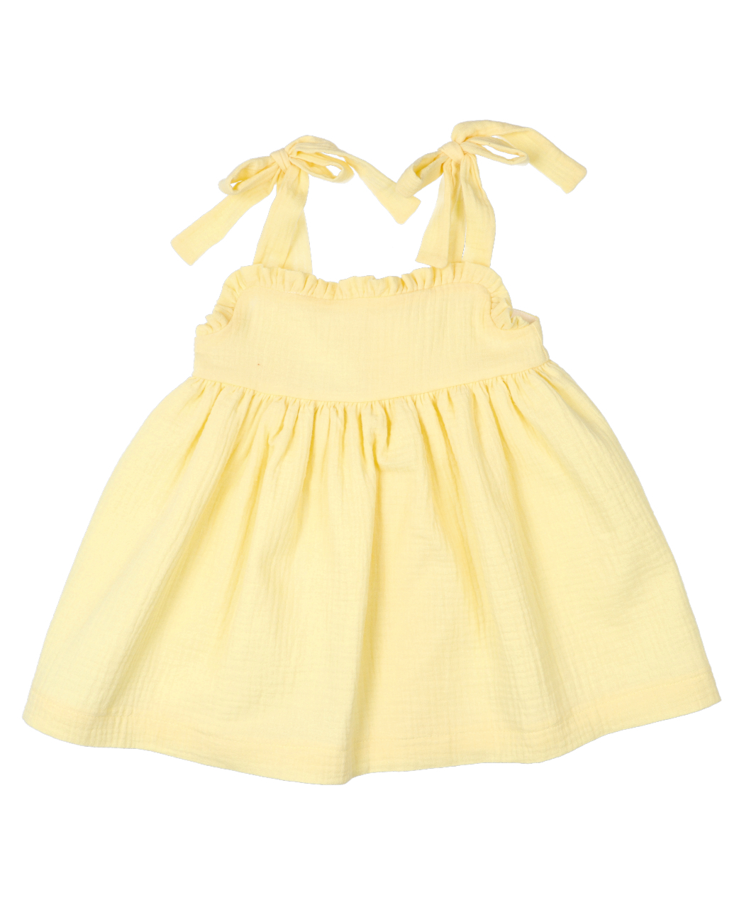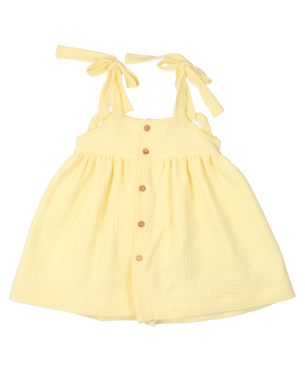 Vestido de bambula en color amarillo, con tirantes y abertura en espalda con botones