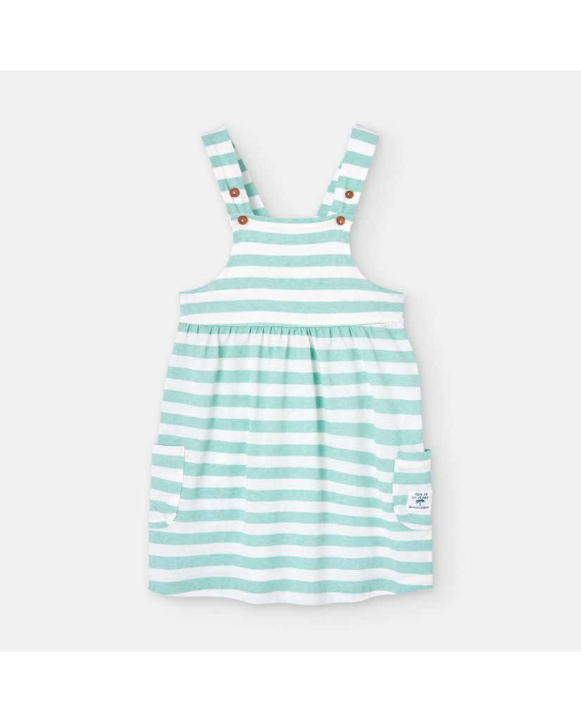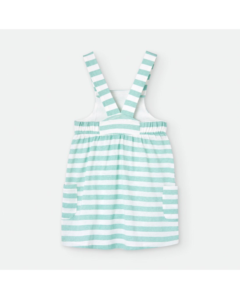 Vestido de tirantes en estampado de rayas en color blanco y turquesa. Bolsillos laterales y espalda abierta.